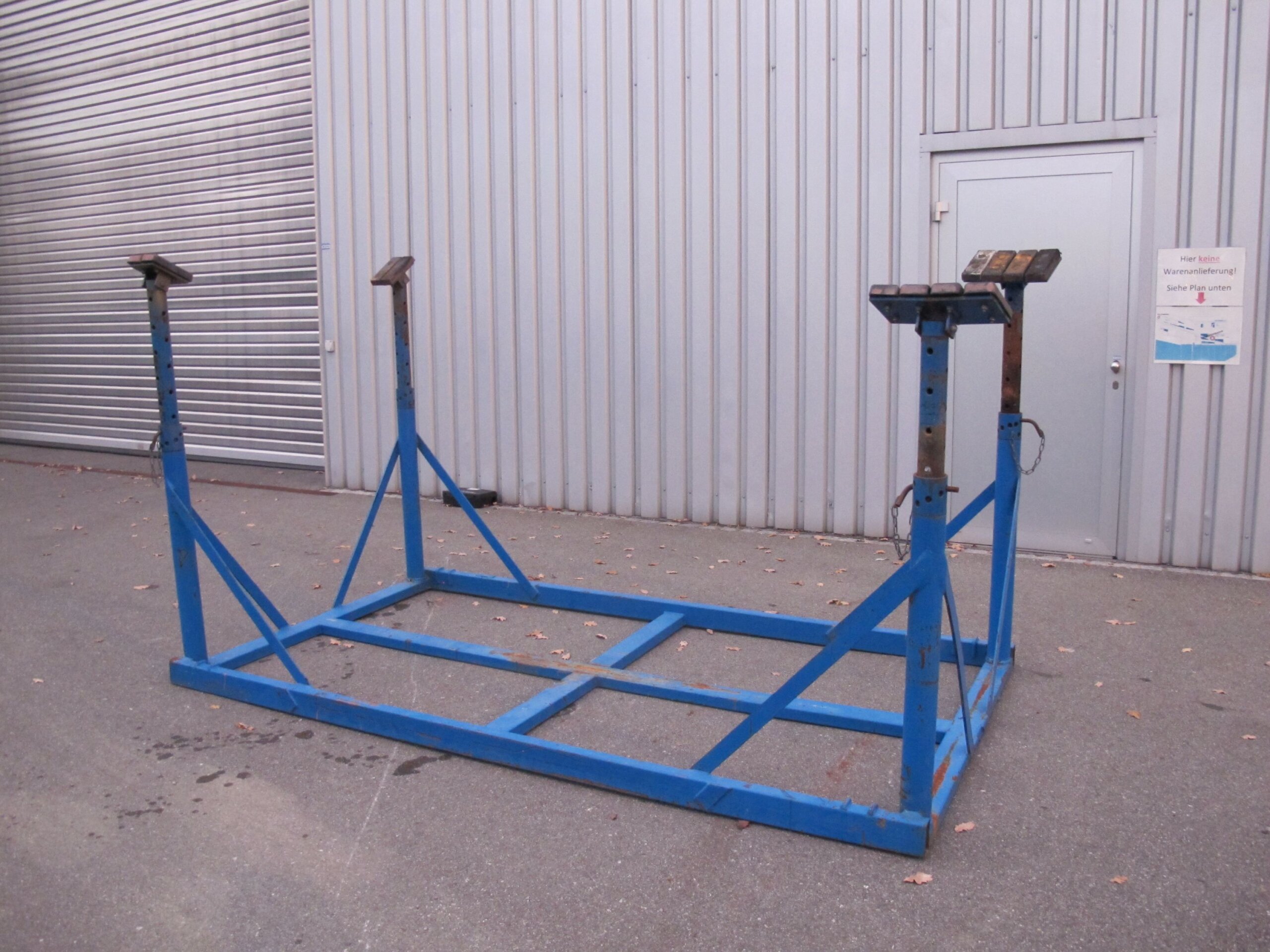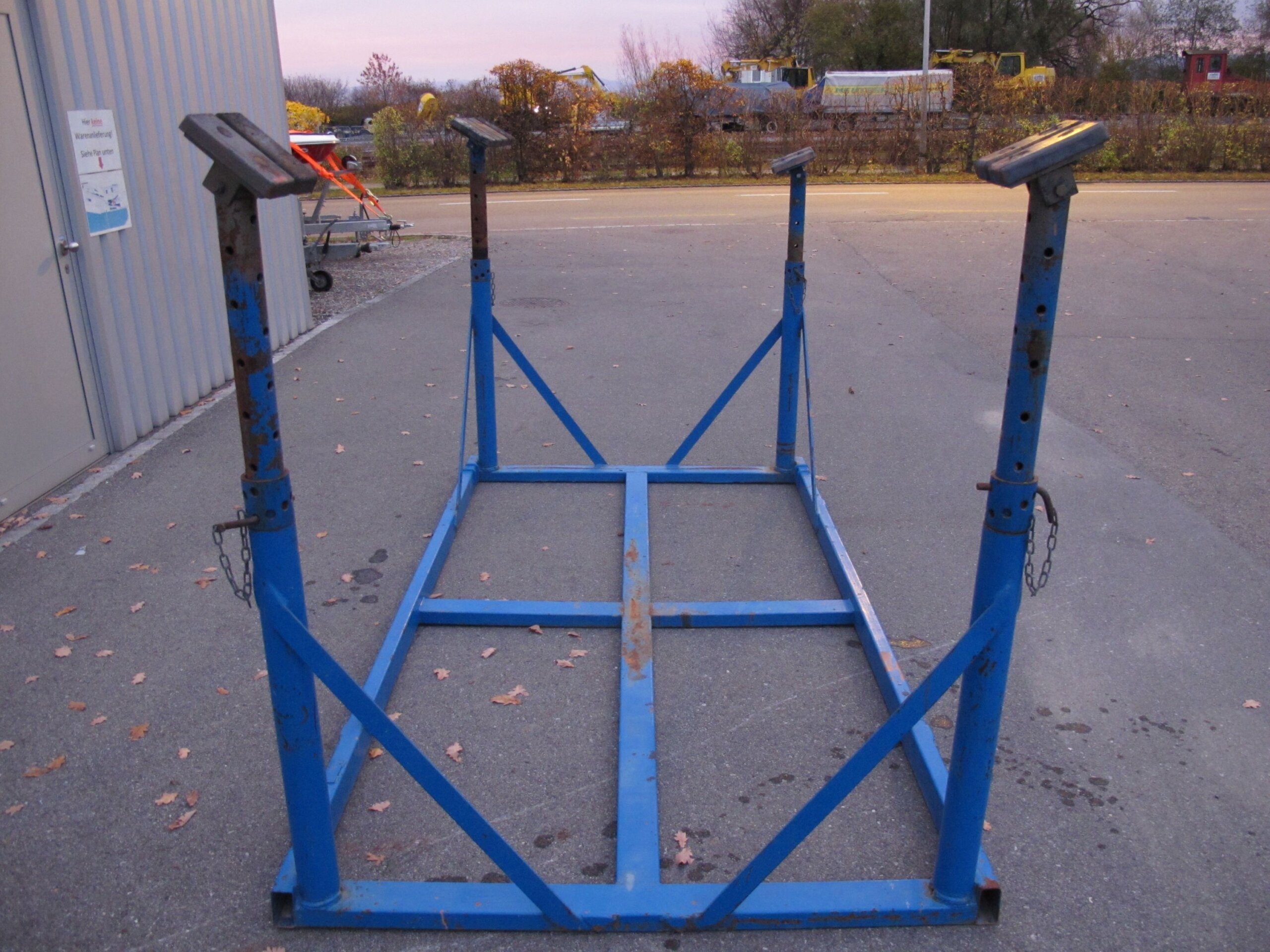 Zum Verkauf stehen diverse Lagerböcke in verschiedenen Höhen und Farben.