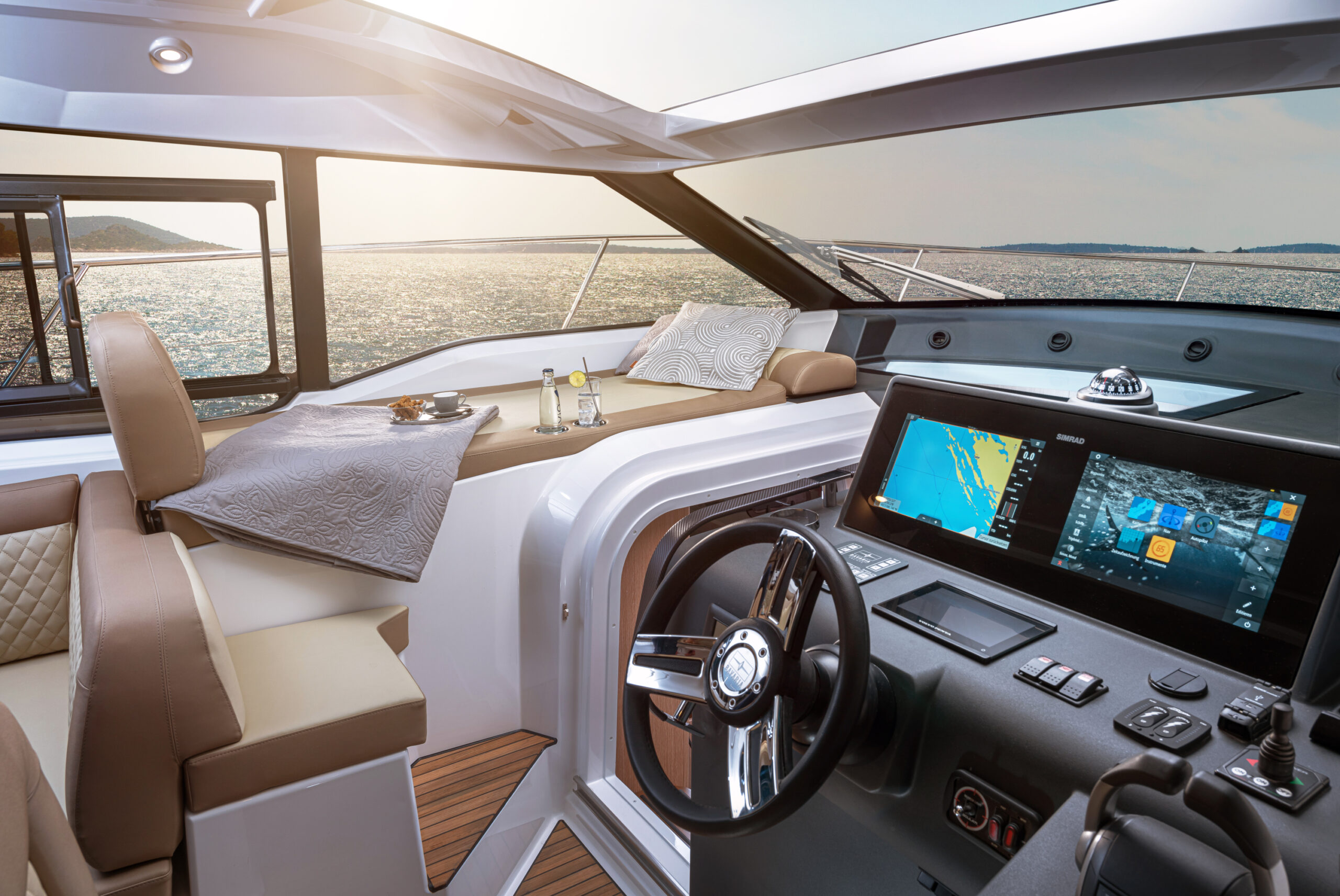 2x 12″ Multifunktionsdisplay Simrad NSX mit integriertem GoFree WiFi und Bluetooth, Touchscreen am Steuerstand; Trimmklappen elektrisch verstellbar;