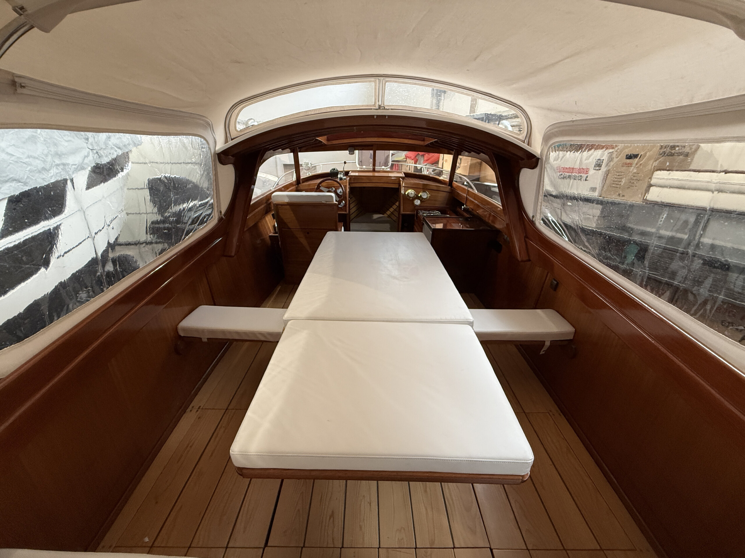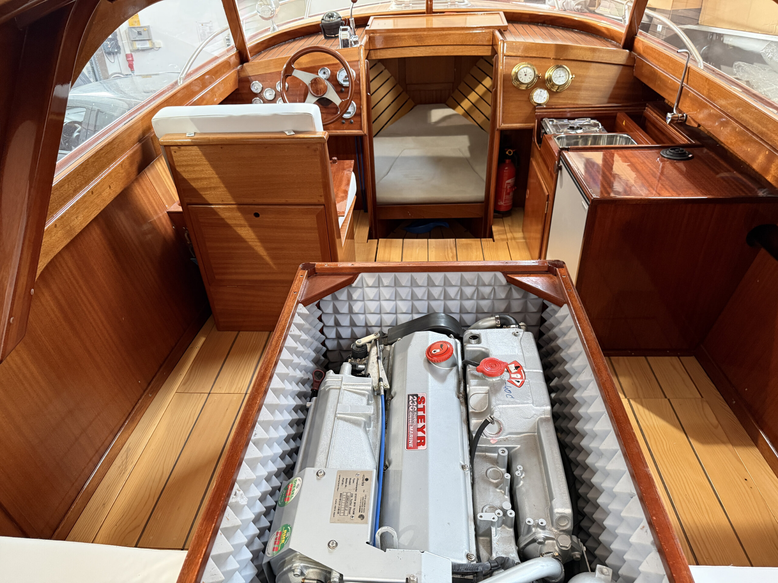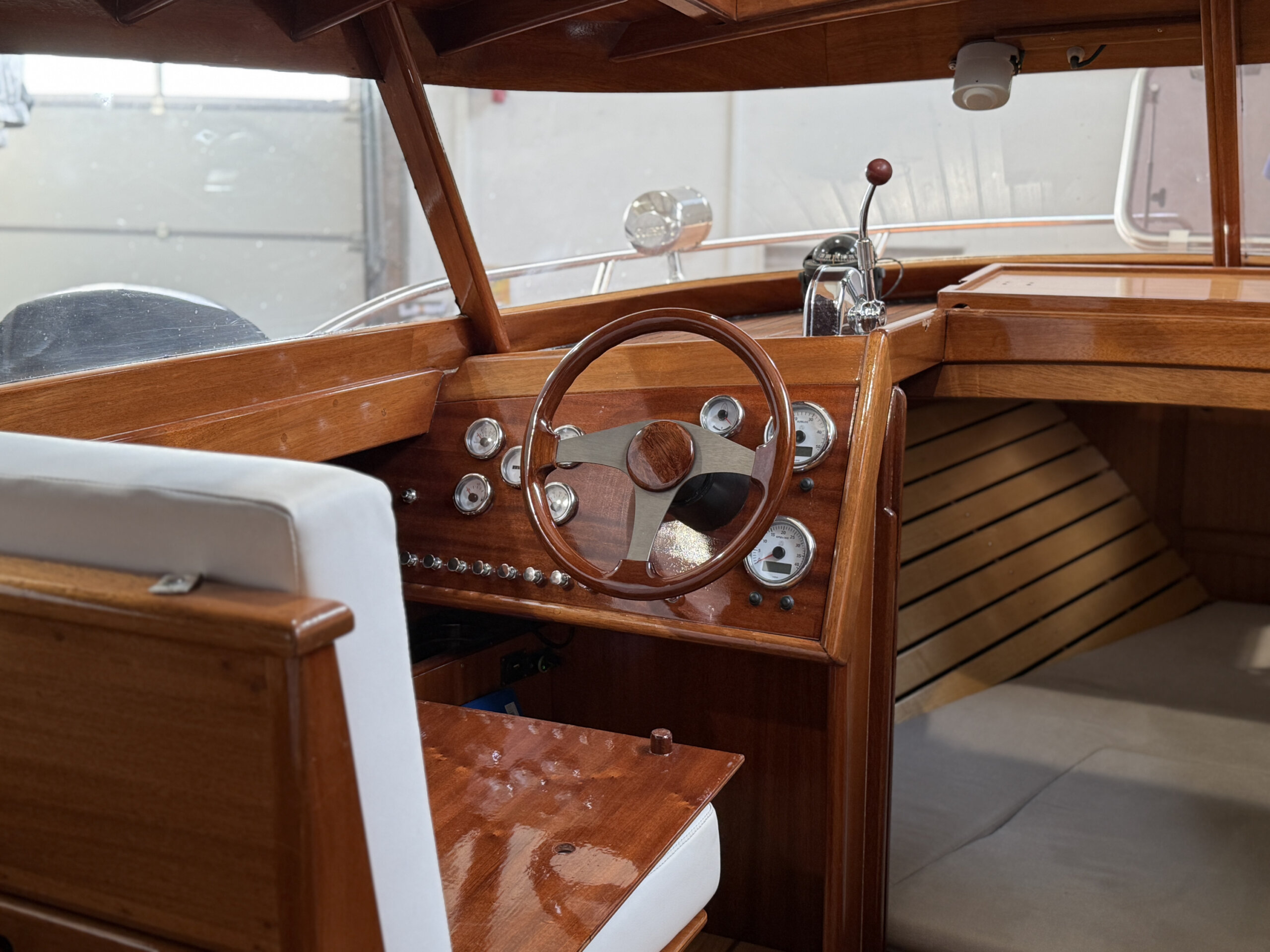 Die Beelitz 870 wurde aufwendig und fachgerecht komplett restauriert. Im Zuge der Restaurierung wurde nicht nur das Boot optisch und technisch umfassend überarbeitet, sondern auch der Motor vollständig revidiert und restauriert. Sämtliche Arbeiten wurden mit hohem Qualitätsanspruch durchgeführt, sodass sich das Boot heute in einem außergewöhnlich gepflegten, nahezu neuwertigen Zustand befindet. Diese Beelitz vereint klassischen Holzboot-Charme mit zuverlässiger, moderner Technik und bietet damit ein sehr hohes Maß an Wertstabilität und Fahrkomfort.