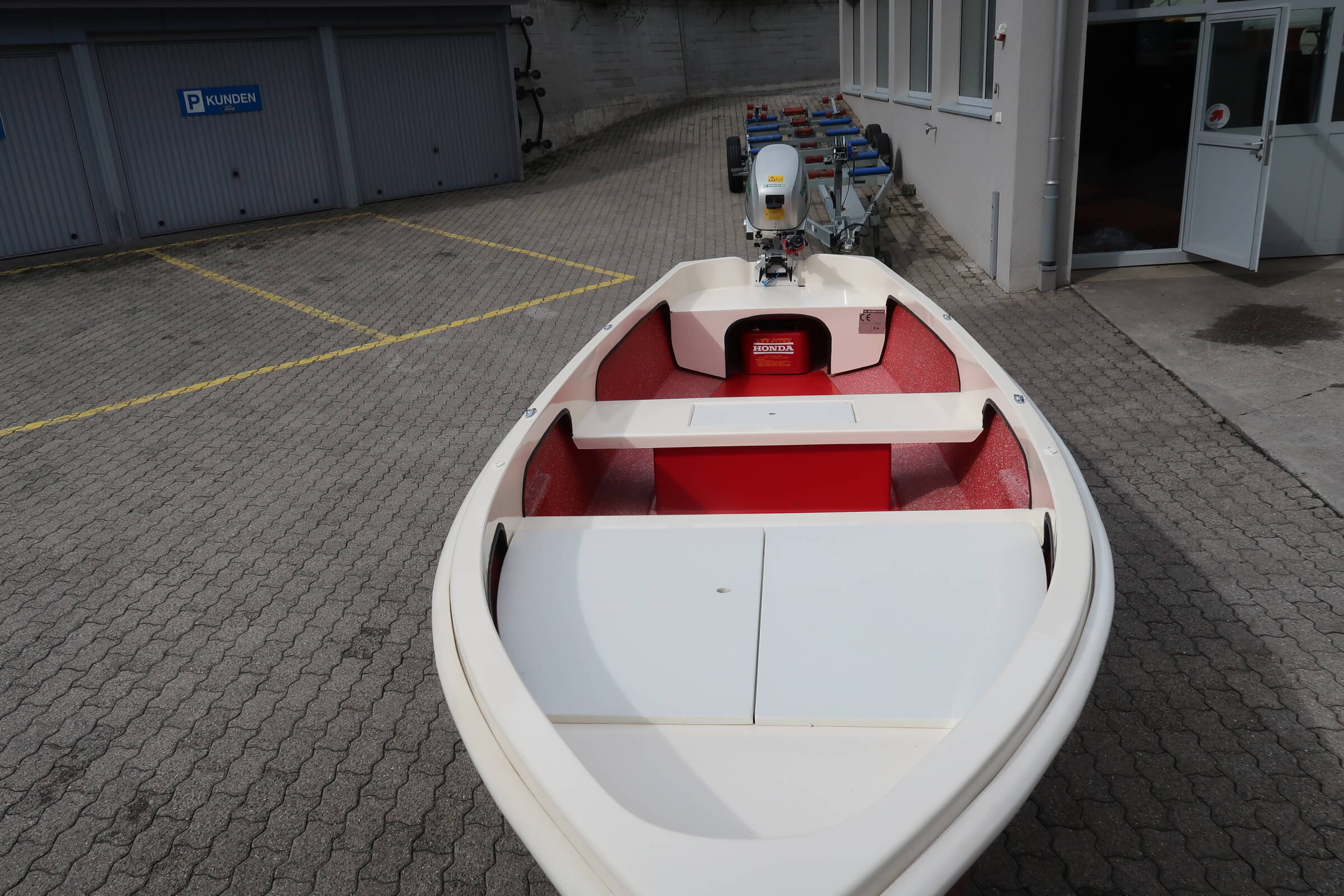 Sehr schönes Boot mit Motor. Ist von Hand Trailerbar mit Slipwagen. Inkl. Persenning, Buegliegematten, Sonnendach, Slipwagen, Ruder und diverse Notausrüsung. Motor ab Service und Abgaswartung