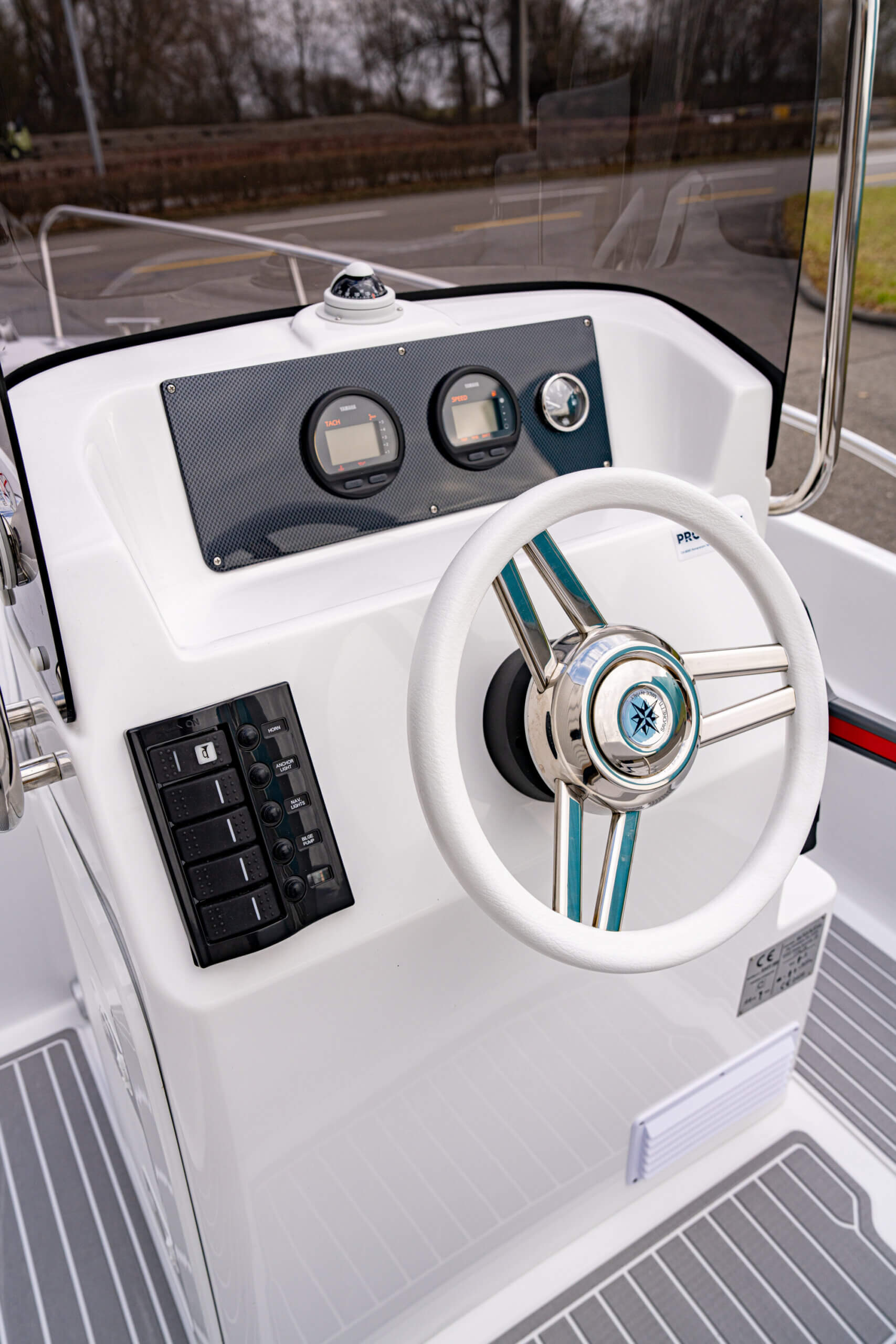 Ankerkastern mit Bugrolle, Edelstahl Reling, Steuerstand mit Scheibe und Reling, Navigationsbeleuchtung, Schalter, Horn, Batteriehauptschalter, Bilgenpumpe, Komplette Sitz und Liegepolsterung, Doppelfahrersitz, Hecksitzbank, Badeplattform, Badeleiter, Scheuerleiste, Bug- und Heckösen, Selbstlenzendes Cockpit, Staukästen, Staukasten im Steuerstand.