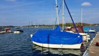 Segelyacht Fan 23, Baujahr 2008, Entwurfskategorie C: Küstennahe Gewässer. Nach Kauf vom Voreigner, der die Fan 23 am Bodensee 2 Saisons gesegelt hat, stand diese bis 2019 abgedeckt in einer Halle am Bodensee, Die Yacht hat keine Borddurchlässe und kann somit wieder eine Bodenseezulassung erhalten. Dort abgeholt, Elektrik ergänzt, neue Fallen-Schoten angeschlagen. Elektrik/Philippi-Schaltpaneel neu, Solarpaneel neu, 220 Volt Landanschluss, Batterie-Laderät, Wassertank 45 ltr. eingebaut, Wasserpumpe installiert, Auffangen des Abwassers in Kanister. BSH-Beleuchtung, Lot-Logge Raymarine Bidata ST 40, Windmesser Klipper. Außenborder Honda 4Takt, 5Ps Langschacht mit Schubpropeller einschl. Fernschaltung. Spinnaker komplett neu, Mastlegevorrichtung, leinenverstellbare Holepunkte für Genua, Einleinen-Reffsystem Großsegel, Andersen Selbstholende Winschen für Genua. Habek-Trailer 2,0to Tüv 04/2027. zusätzlich Elektro-AB Minnkota an Halterung. Pinnenpilot Raymarine ST 1000. AGM-Batterie 2024, 95AH. Sprayhood, Komplettpersenning. Fender, Festmacher, Anker Delta 6,5 kg. Liegt zurzeit im Wasser, bei ernsthaftem Interesse, Probeschlag möglich. Liegeplatz Altenheim, Rhein. Für das Winterhalbjahr gibt es ein Alu-Dachgestänge, einschl. passender Plane. Unterwasserschiff neu, Rumpf-Deck aufpoliert und UV-Schutz, WC-Abtrennung für Porta-Potti. Sonnensegel, Origo-Kocher 1-flammig. Die Fan ist sicher nicht günstig, jedoch komplett fertig ausgerüstet.