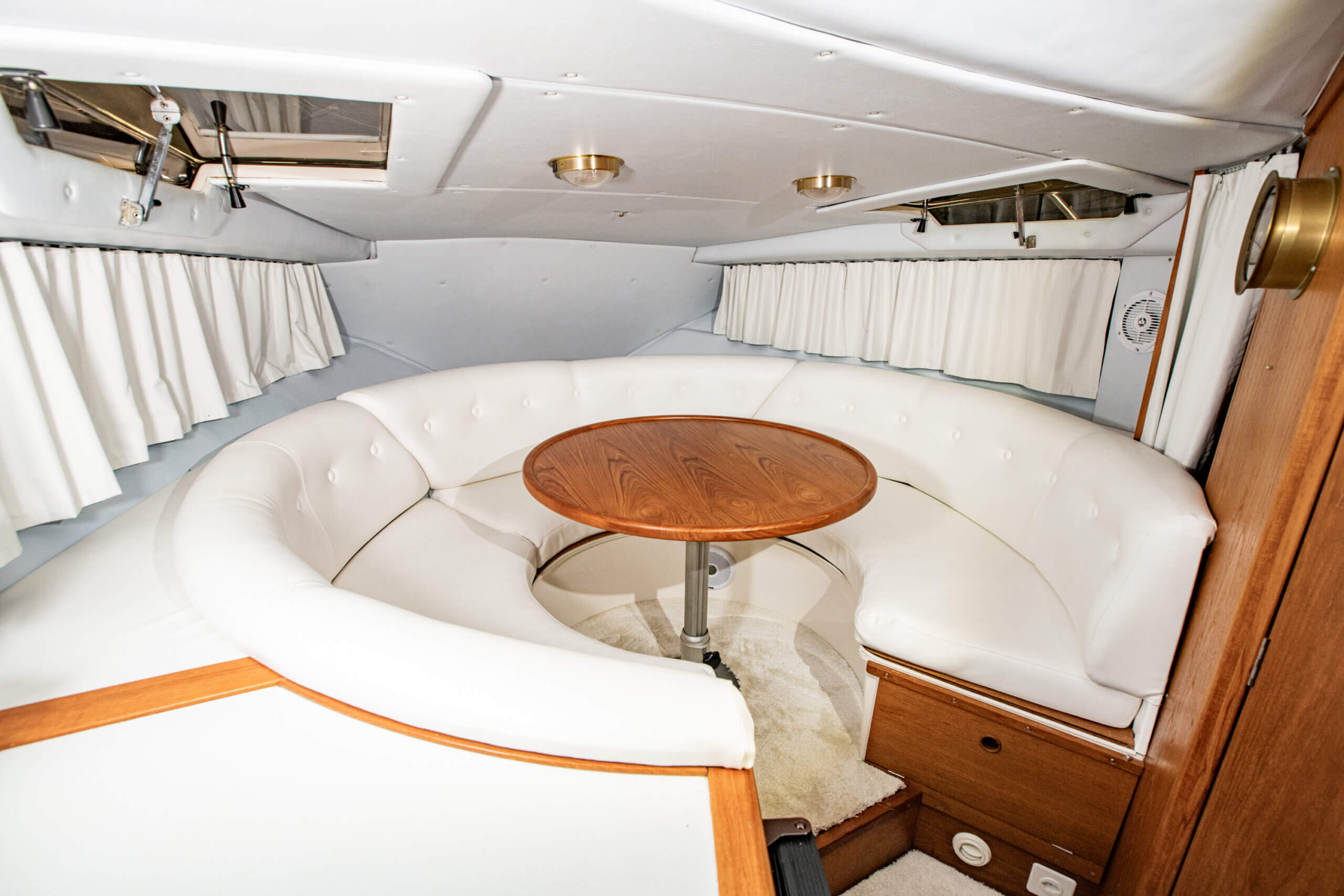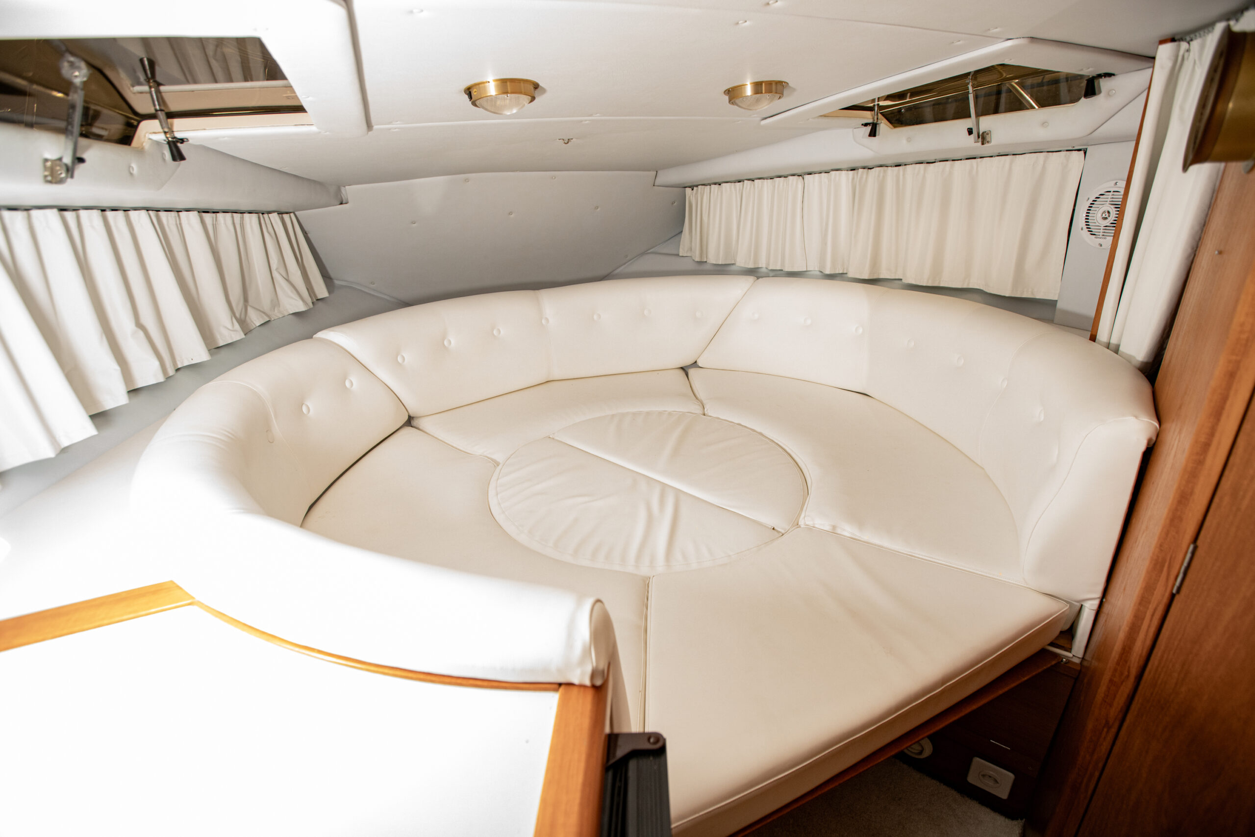 Grosse Liegefläche (Himmelbett) 185 x 230 cm rund, Achterkabine 140 x 200 cm