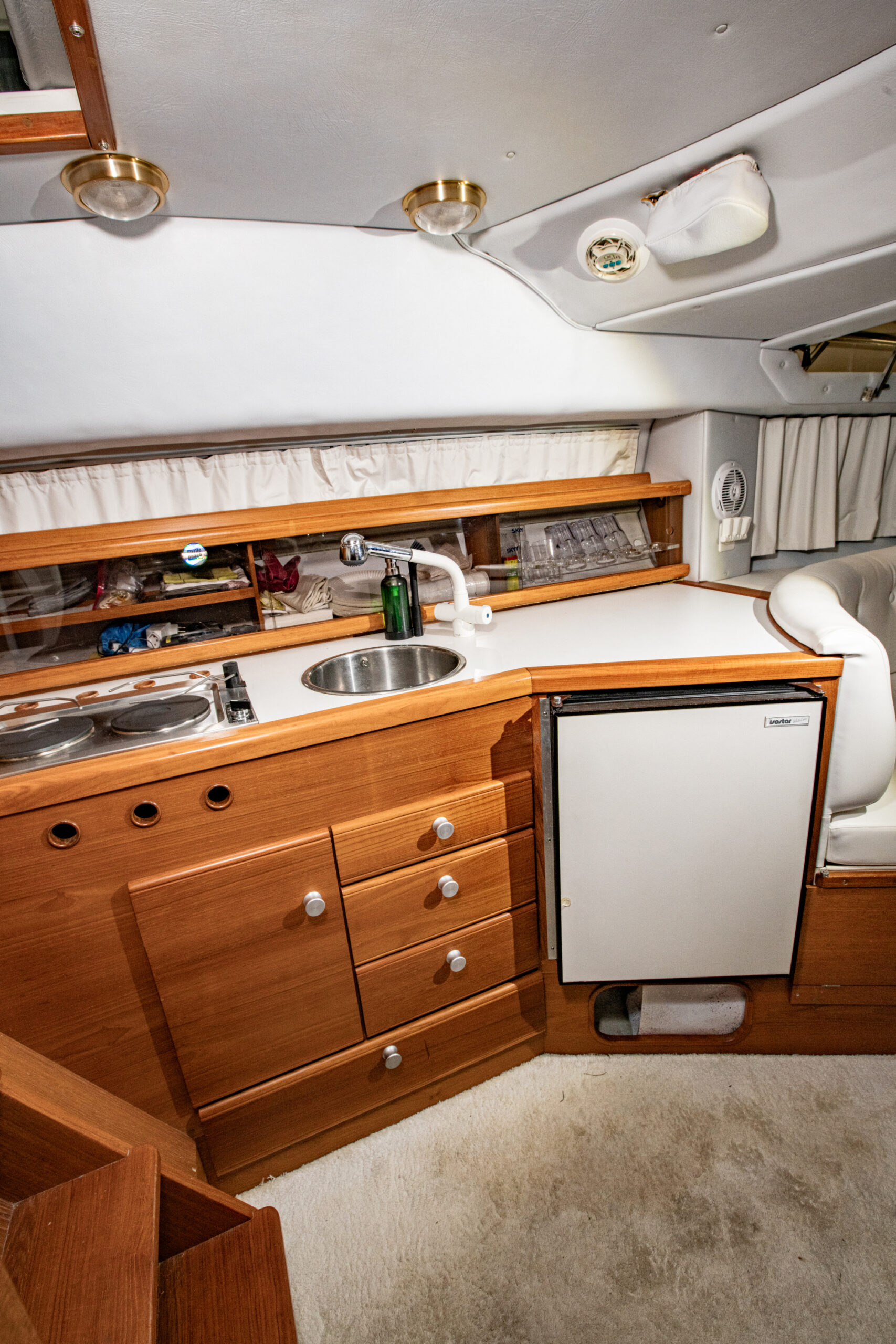2019: Neuer Motor, komplett neuer Unterwasseraufbau, alle Polster innen und aussen, neue Moskitonetze, neuer Chromstahlfäkalientank ca. 150l mit Anzeige im Cockpit, Beleuchtete Vitrinen, Sämtliche Armaturen neu in Chromstahl, Umbau Frischwasser auf direkte Seewasserentnahme mit Filteranlage.