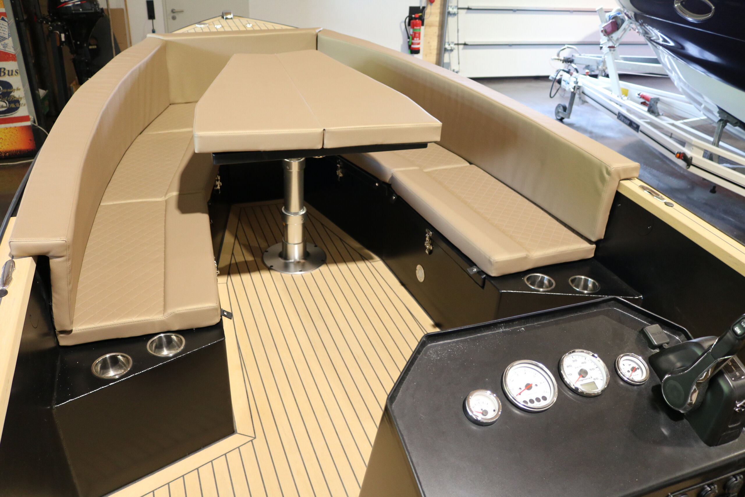 Lenkrad * Hydraulische Lenkung * Instrumententafel * Hupe * Navigationslichter * 12 V und USB-Buchse an der Konsole * Kraftstofftank 60 l * Batterie * Automatische Bilgenpumpe * Sitze und Rückenkissen * Stauraum unter den Sitzen * Gasdruckdämpfer * 8 x Edelstahlklampen * Abschleppöse * Ausziehbarer Haken & Ruder * Feuerlöscher, 2 kg * 3 x Luke * 6 x Getränkehalter * Lackierung * Auftriebsschaum * Ankerkasten * Beleuchtung Deck