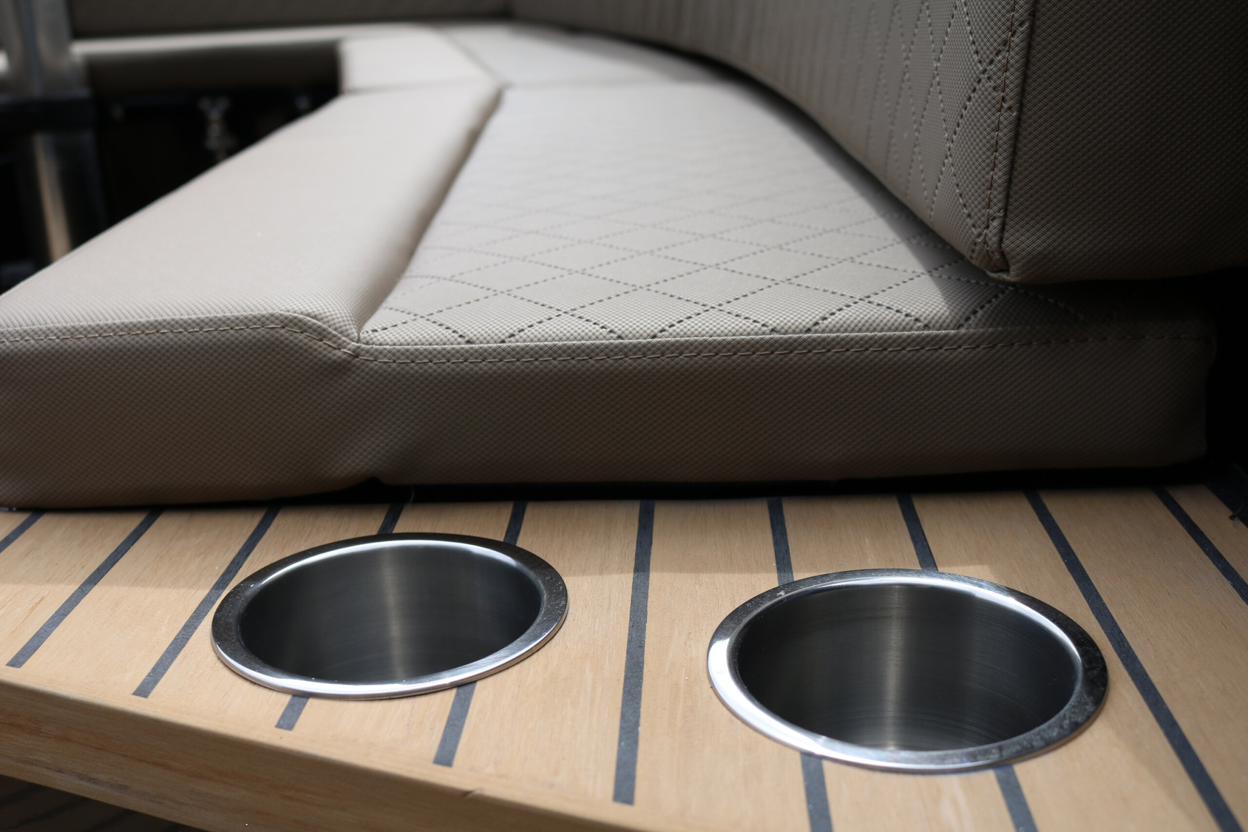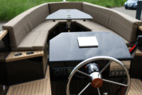Steering wheel * hydraulic steering * instrument panel * navigation lights * 12V and USB socket on the console * 69L fuel tank * battery * automatic bilge pump * seats and back cushions * storage space under the seats * 6 x stainless steel cleats * towing eye * retractable hook & oar * 2 kg fire extinguisher * 3 x hatches * 4 x cup holders * paint finish * buoyancy foam * anchor locker