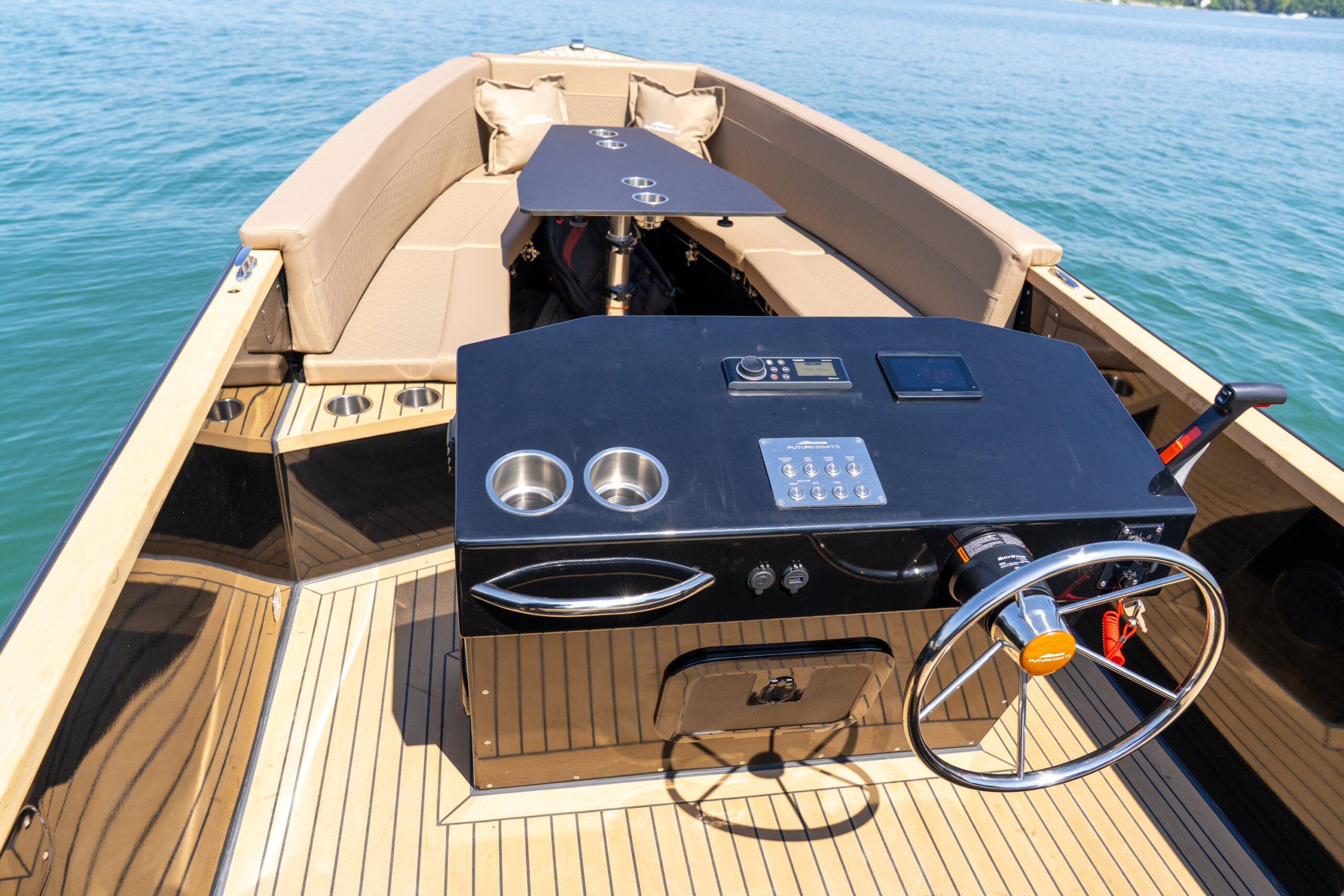 Flex-Teak * Bimini vorne, hinten * Tisch, pneumatisch * Badeleiter * Anker 8 kg, 40 m Leine * Audio System * Antifouling * Bootsabdeckung * Yamaha Instrumente Touchscreen Display CL5