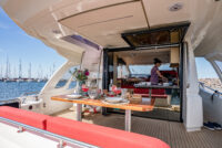 10 kW Generator (2x), Inverter 56 V – 90 A / 7’000 W, Grauwassersystem, Antifouling inkl.Epoxy-Grundierung, Cockpittisch und Tisch auf Flybridge in Teak, Flybridge Sonnenliegepolster, Flybridge Biminitop, Hydraulische Gangway mit Fernbedienung, Indirekte LED-Beleuchtung, Komposit Decksbelag, Lithium-Polymer Batterien 720 Ah / 56 V, Photovoltaische Panels integriert (2x), Solar-Batteriesteuersystem, Kühlschrank 224 Liter mit Gefrierfach, Venezianische Holzlamellen-Jalousien