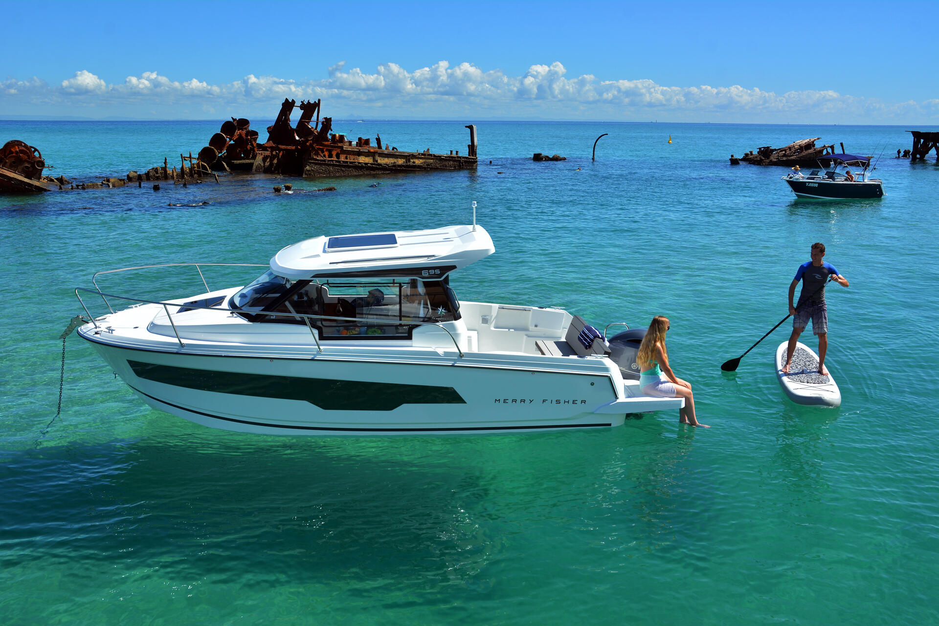 Die Merry Fisher 895 Série 2 eignet sich damit perfekt für Wochenendausflüge und Fahrten mit der Familie. Sie können bei schönem Wetter das Panoramafenster öffnen und einen offenen Raum zum See hin schaffen.