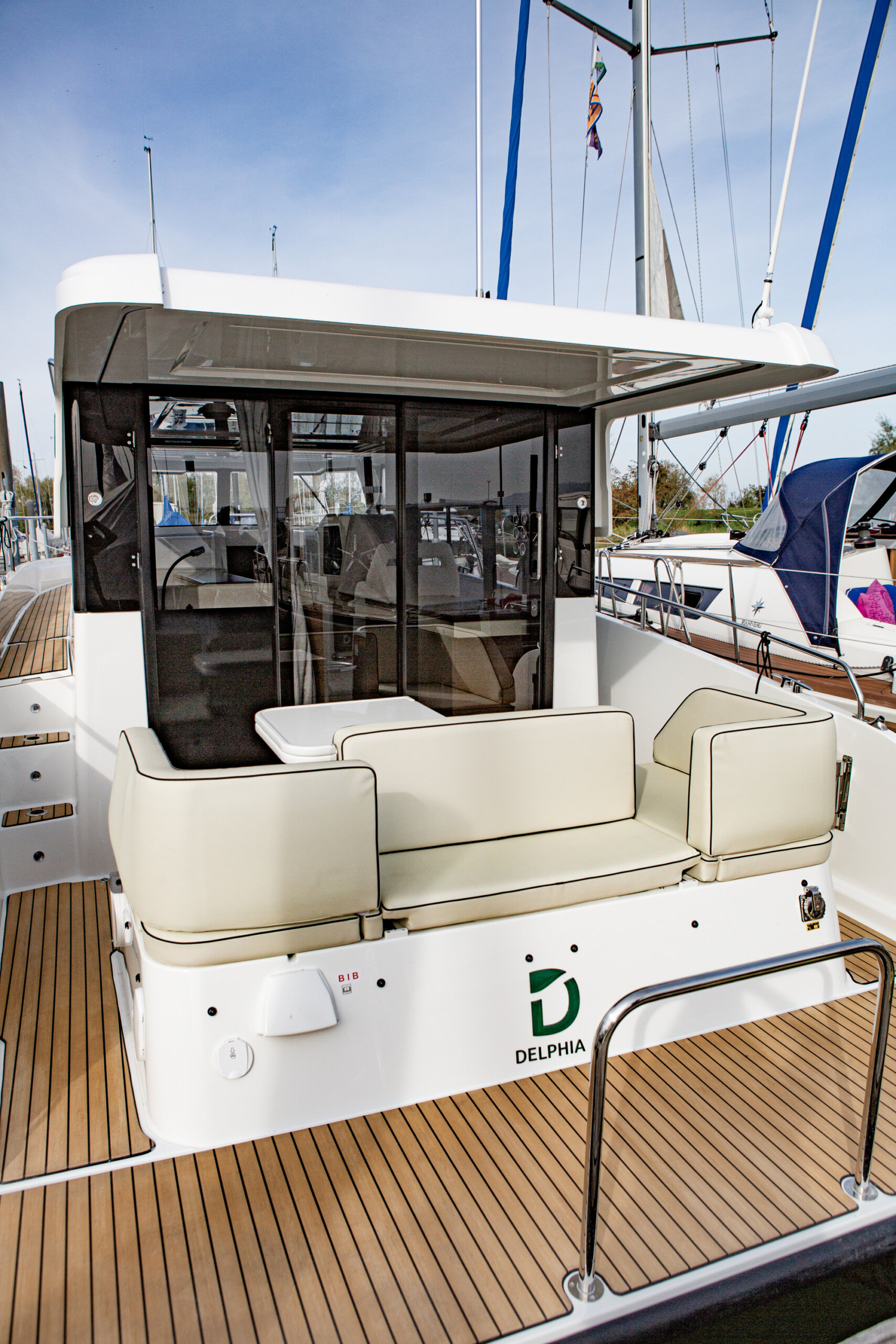 Die Merry Fisher 895 Série 2 eignet sich damit perfekt für Wochenendausflüge und Fahrten mit der Familie. Sie können bei schönem Wetter das Panoramafenster öffnen und einen offenen Raum zum See hin schaffen.