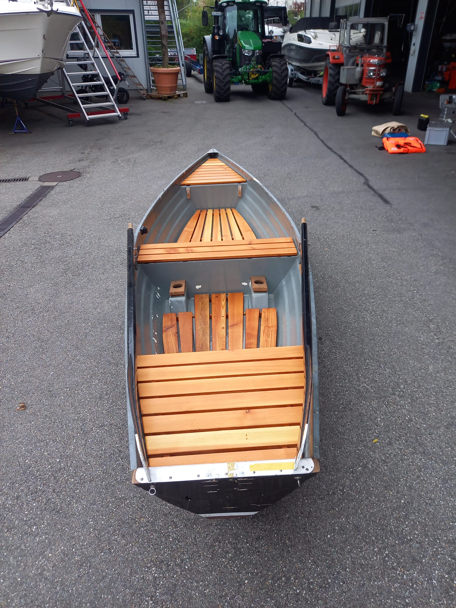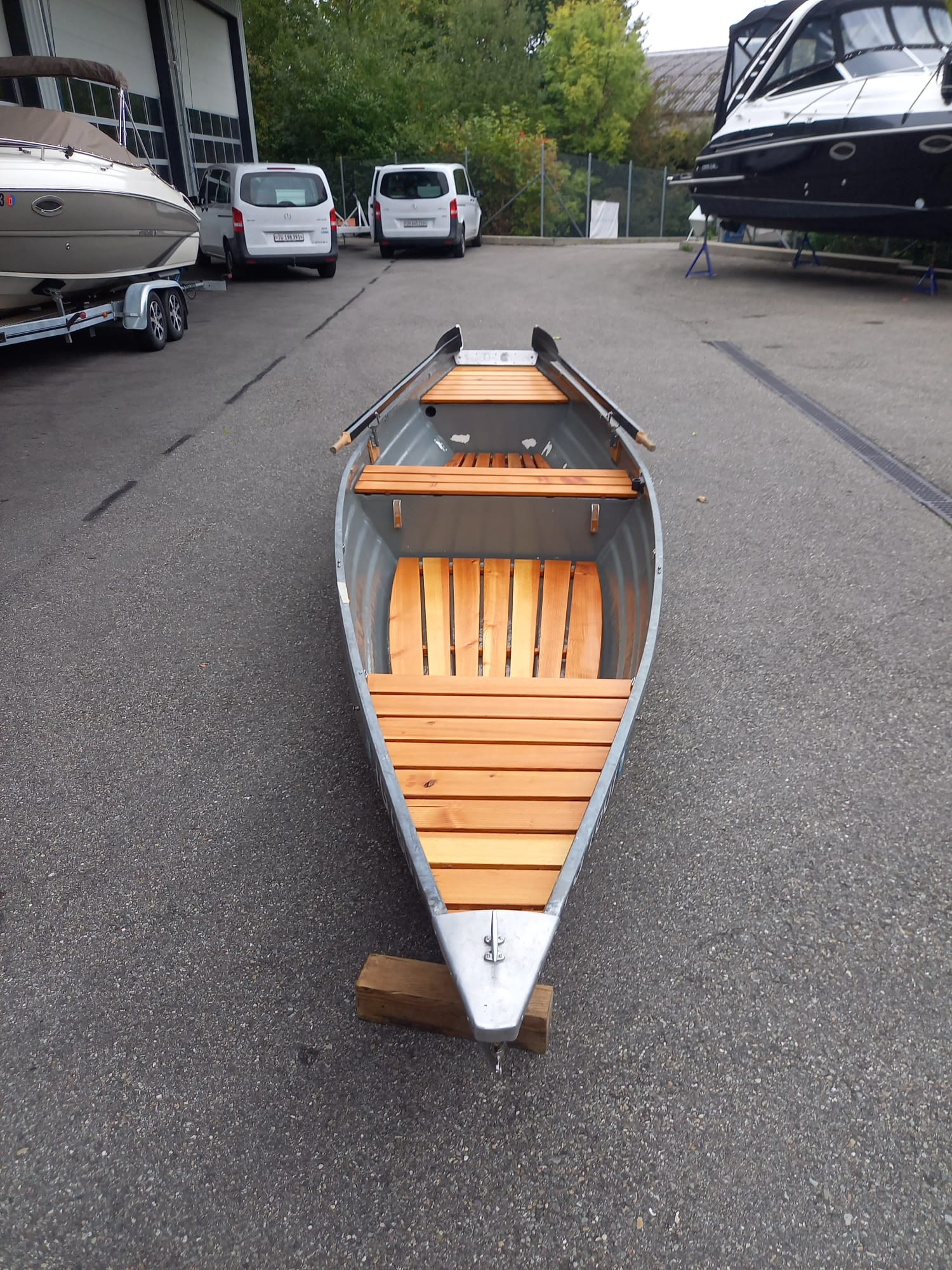 Tolles Boot zum rudern mit Sliprad unter dem Rumpf, einfach in der Handhabung. Dazu ein zuverlässiger Motor frisch ab Service. Das Boot kann in unserem Bootshaus direkt am See mit eigenem Slip abgestellt werden. Schöne Sonnenploster sind auch dabei, auf den Bildern leider nicht zu sehen!