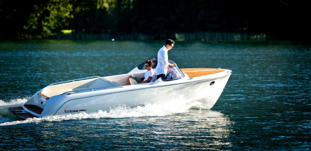 Durchdachtes Design mit einer Vielzahl nutzvoller Details: Das ist die Eclipse 580. Durch die erhöhte Liegefläche haben Sie beim relaxen am Boot eine perfekte Aussicht. Teak am Vorschiff und Boden sowie edle Beschläge machen das Elektroboot zu einem eleganten Schmuckstück auf dem Wasser, das zudem mit modernster Technik ausgestattet ist – Bordcomputer und GPS Geschwindigkeitsmesser inklusive. Durch das einzigartige Design des Bootes gleiten Sie nahezu lautlos mit dem umweltfreundlichen Elektromotor durchs Wasser. Zudem sorgt die Form der Eclipse 580 für eine hohe Fahrstabilität auf allen Gewässern.