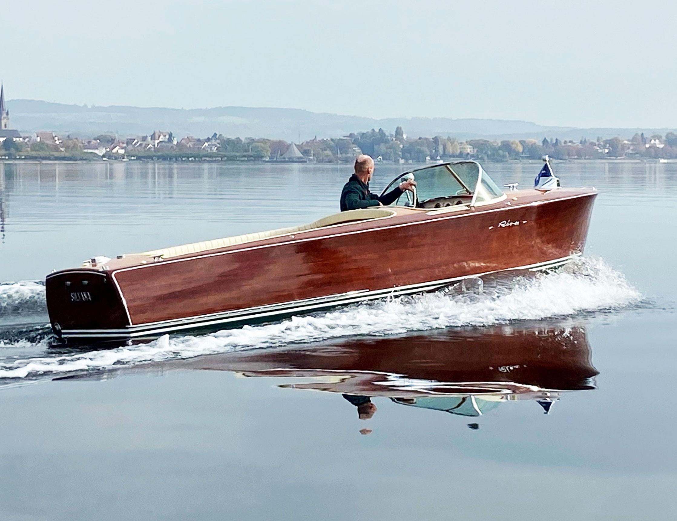 * Tags: Holzboot, Klassisches Boot, Oldtimer, Bodensee (Bodenseezulassung), Trailerbar, Runabout, Kunstwerk, Exklusiv