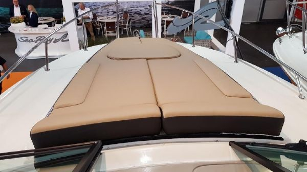 Diese neue Sea Ray 265 Sundancer vereint Komfort, Eleganz und Sportlichkeit. Durch das moderne, stromlinienförmige Design zieht dieses erstklassige Modell automatisch alle Blicke auf sich. Der ausgedehnte Cockpitbereich lädt zum geselligen Beisammensein ein. Standard ist eine Kombüse mit Spüle, Herd, Kühlschrank und optionaler Mikrowelle. Die Premium-Stereoanlage mit spritzwassergeschützten Lautsprechern sorgt für satte Klänge. Durch den steuerbordseits angebrachten Scheibenwischer haben Sie auch bei schlechtem Wetter klare Sicht. Die Innenausstattung in Nussbaum und Premium Leder, mit Holzfußboden ist serienmäßig und schafft ein wohnliches und gemütliches Ambiente an Bord.