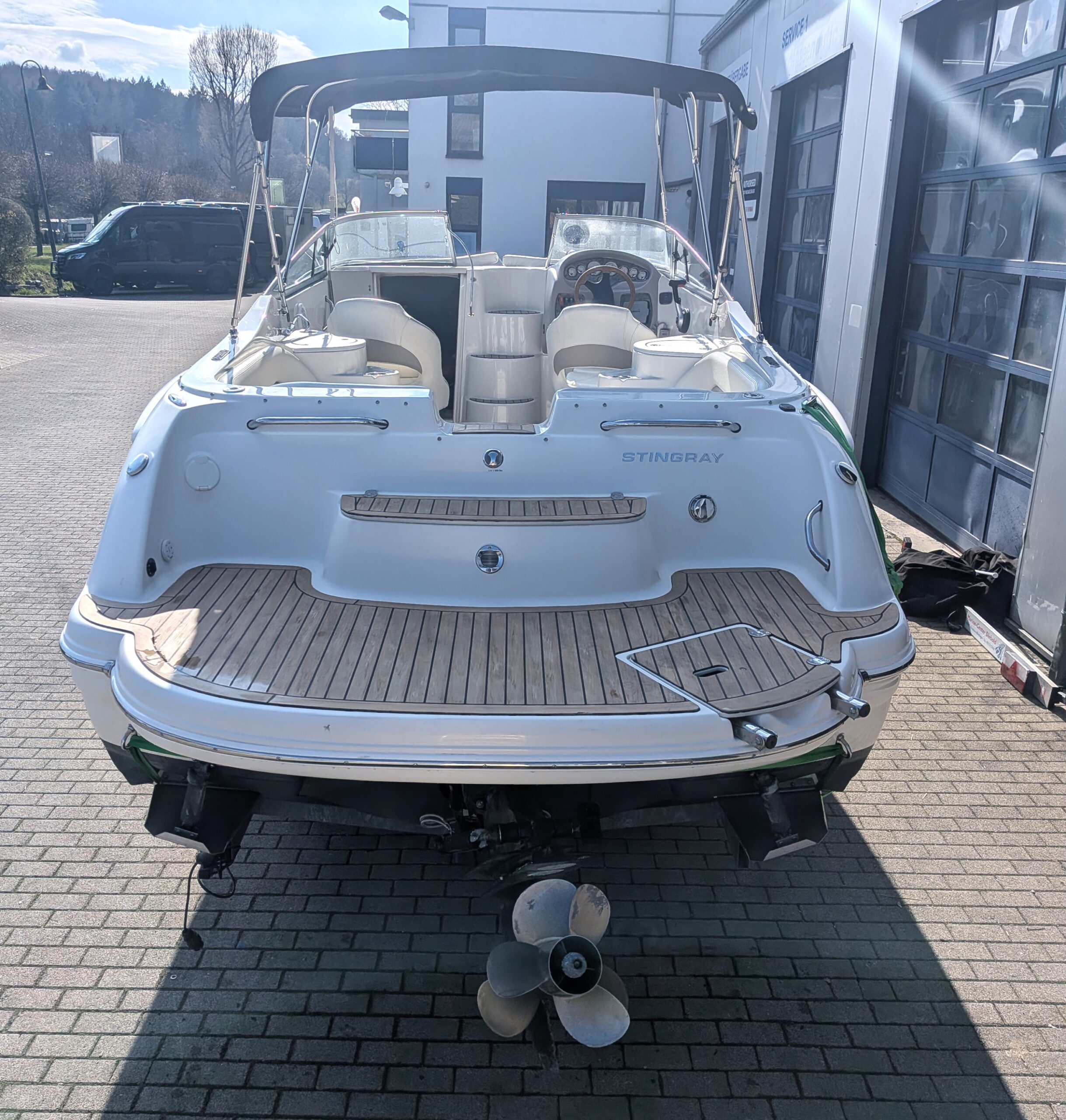 Es handelt sich hierbei um eine Stingray 250 CR. Dieses Boot bietet optimale Bedingungen für eine schöne und entspannte Zeit auf dem See. Es wurde bisher auch nur auf dem Bodensee gefahren. Verkauft wird das Boot ohne Trailer, dieser kann jedoch für einen Aufpreis zusätzlich erworben werden.