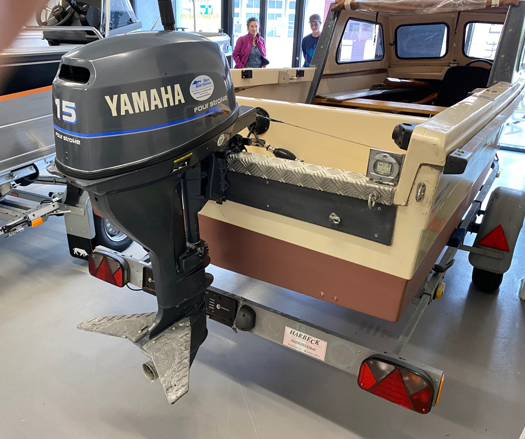 Das Boot ist für 5 Personen zugelassen und verfügt über einen 15 PS Yamaha Aussenbordmotor, welcher bequem über das Lenkrad gesteuert werden kann. Der Motorenservice inklusive Abgaswartung ist bis Mai 2027 gültig.