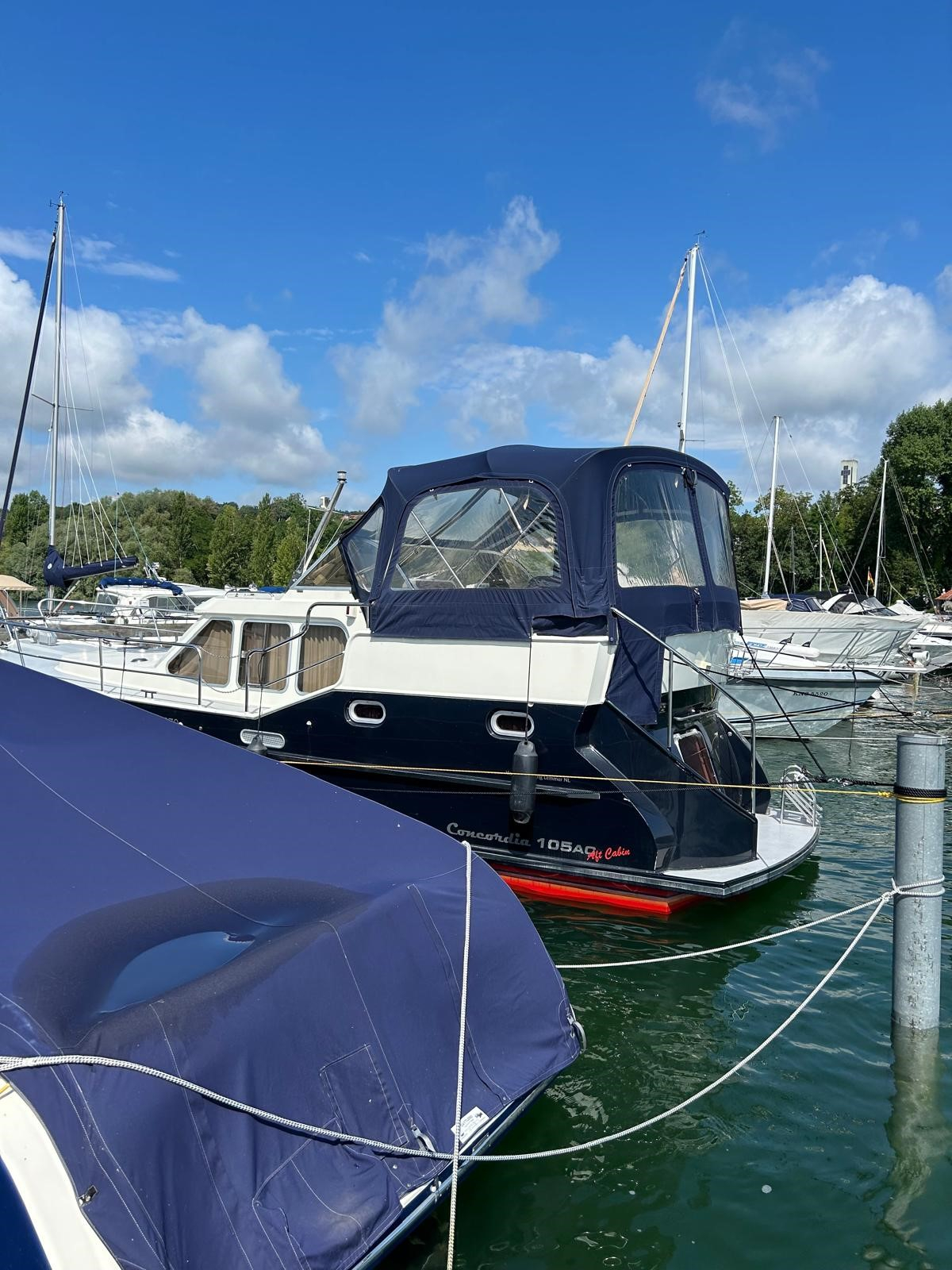 Stahlboot der holländischen Werft Visscher „Concordia 105 A“ mit Bodenseezulassung und aus erster Hand. Baujahr 2008, Erstzulassung/Einwasserung 2009. Betriebsstunden: ca. 120 h. Der Neupreis liegt bei ca. 260.000,- Euro. Neue Zulassung noch bis Juli 2027.