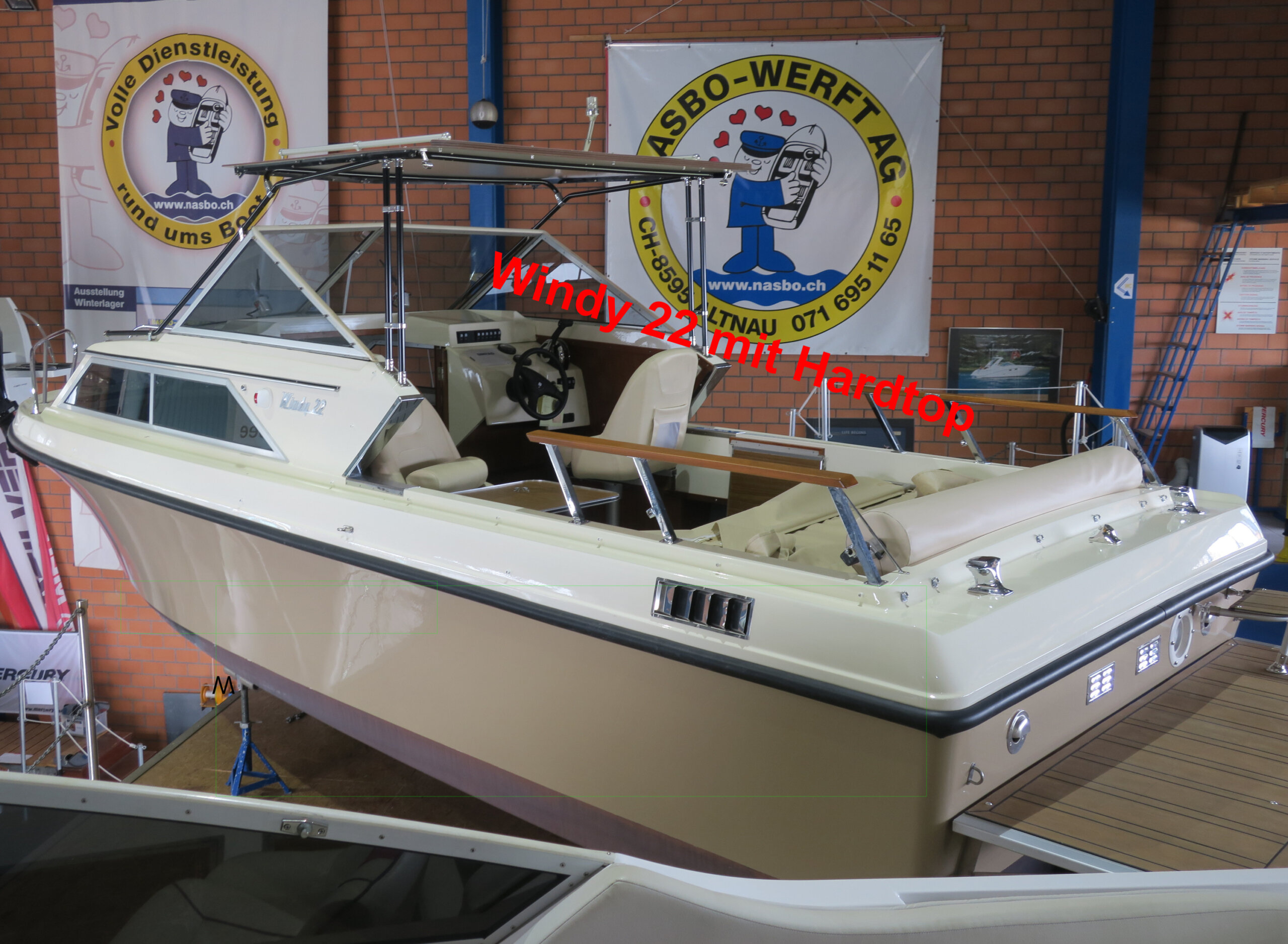 Re-Powering (Grunderneuert) Windy 22 HC mit neu aufgebautem Hardtop, Mercruixer 4,5 Liter Motorenanlage, grosser Badesteg mit Leiter und vielen neuteilen:Unser Bekenntnis zum Umweltschutz findet seine Fortsetzung in der Einführung der Emission Control (EC) Technologie, dem neuen Abgas-Katalysator System von MerCruiser. Während die Schadstoff-Emissionen signifikant reduziert werden, bieten diese Katalysator- Motoren volle Leistung und markant verbesserte Kraftstoffeffizienz!